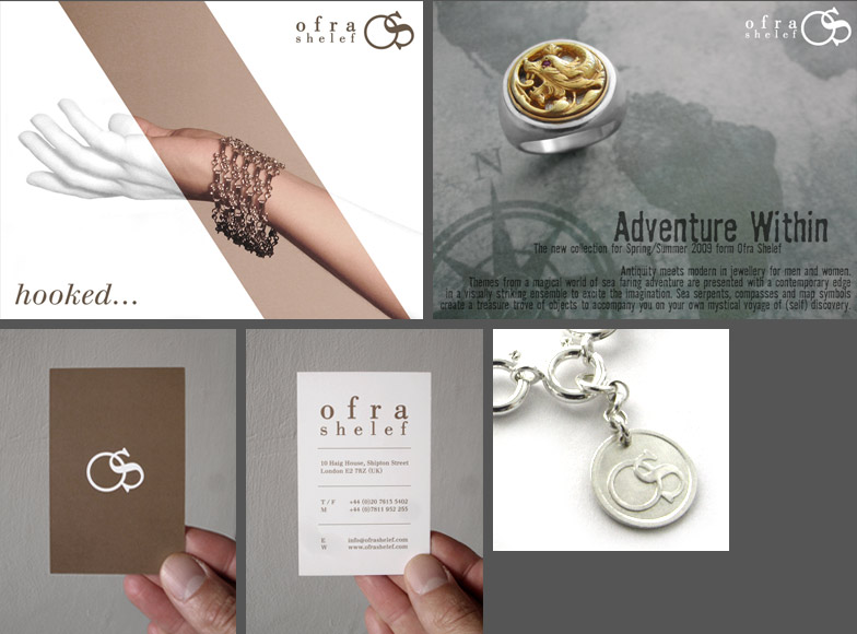 | GRAPHIC DESIGN / brand development / corporate identity and art direction prev / next / 1 / 2 / 3 / 4 / 5 / 6 / 7 / 8 / 9 / OFRA SHELEF / Brand development Starting with identity and stationery, GM has been working with jewellery designer Ofra Shelef to develop creative brand material |