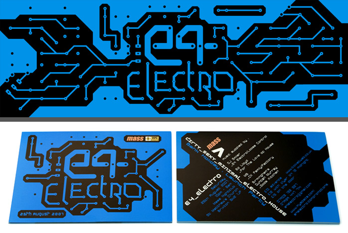 | GRAPHIC DESIGN SAMPLES / brand development / corporate identity and art direction prev / next / 1 / 2 / 3 / 4 / 5 / 6 / 7 / 8 / 9 / E4 ELECTRO / Poster and Flyer Identity, flyer, banner and poster for club night |
